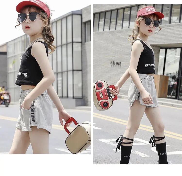 甘辛MIXのカジュアルスタイルに欠かせない、へそ出し重ね着シャツ&ショートパンツセット。