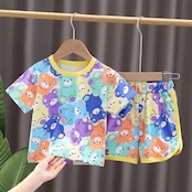 カラフルなくまの総柄が目を引く、セットアップ✩.*˚